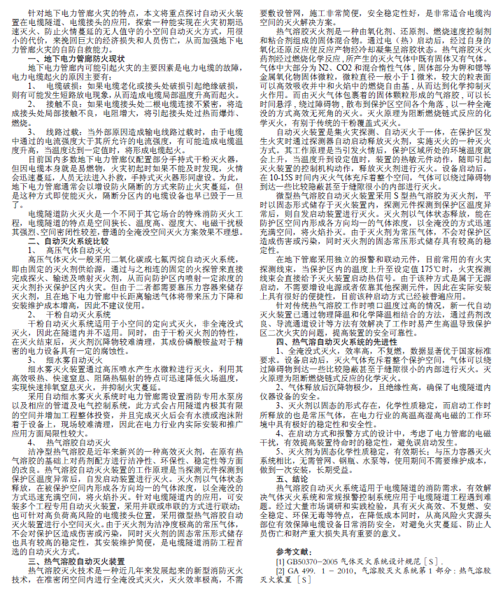 淺談地下電力管廊的自動滅火系統(tǒng)應用