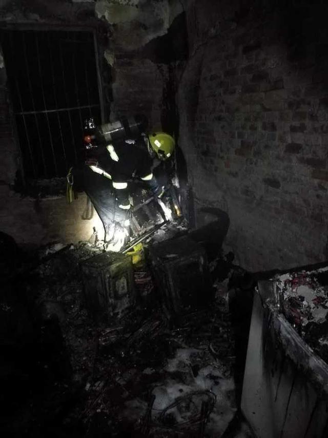 救援人員立即實施處置,出3支水槍夾擊撲救,其中正門1支水槍打擊火勢,1支水槍內(nèi)攻,后面1支水槍堵截火勢向上蔓延。