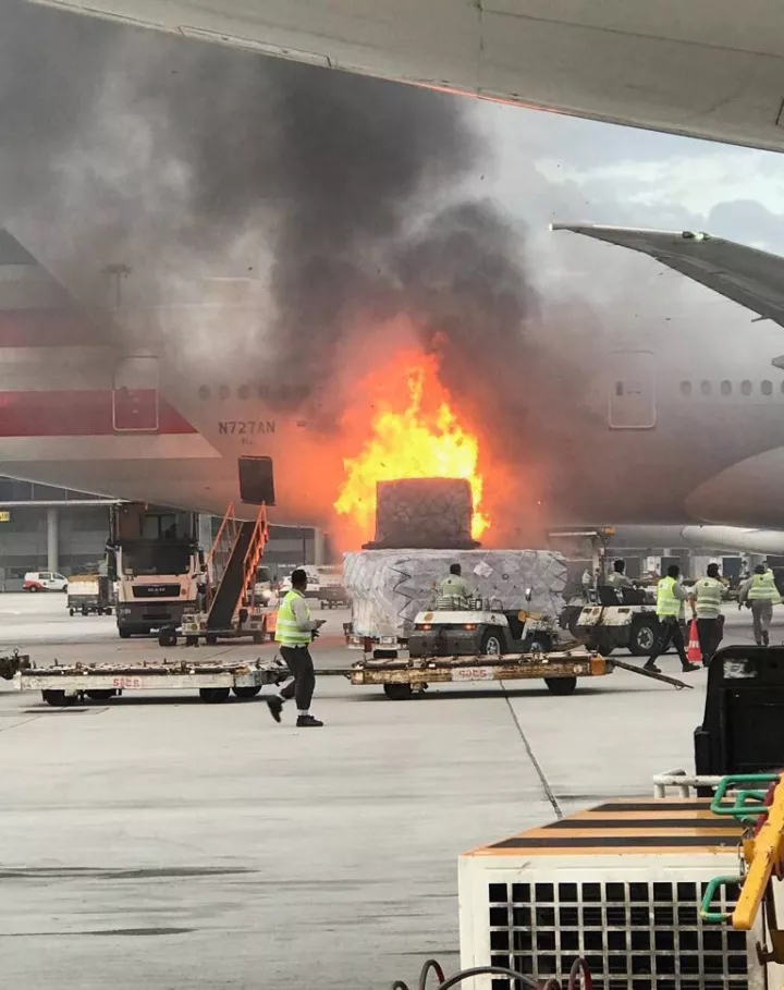 美國(guó)航空一班編號(hào)AA192客機(jī)原定于傍晚6時(shí)10分出發(fā)前往美國(guó)洛杉磯,至下午5時(shí)許于42號(hào)停機(jī)坪停泊時(shí),近機(jī)尾的上貨位置有貨物懷疑起火,火速迅速蔓延,客機(jī)亦被波及?;鹁陂g,有職員逃生時(shí)不慎墜地受傷。消防接報(bào)趕至,迅速將火熄滅,目前起火原因正在調(diào)查中。